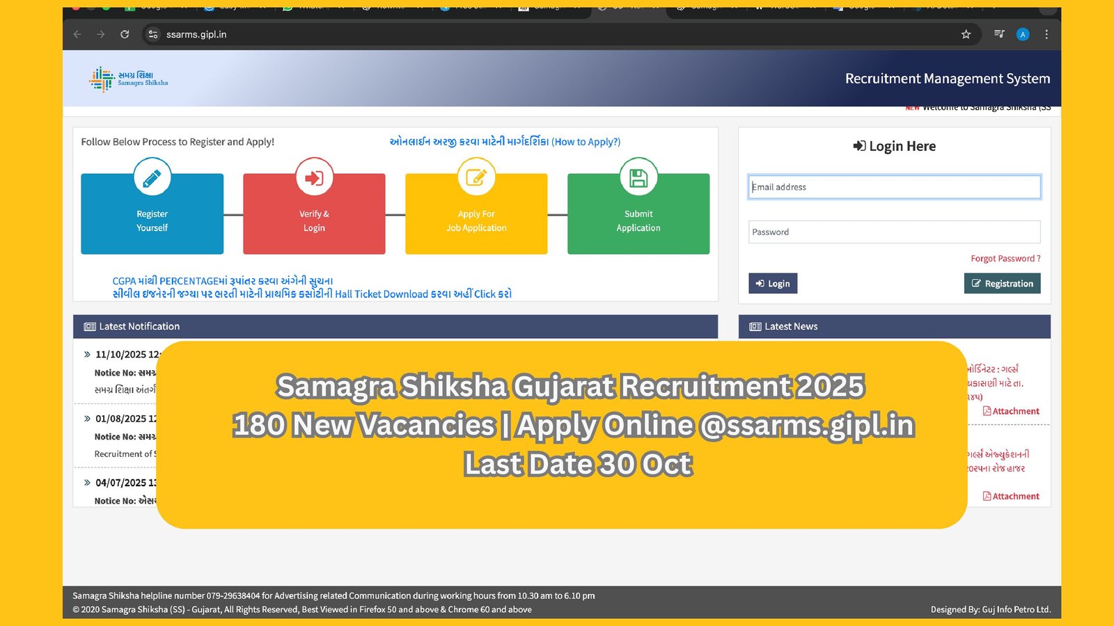 Samagra Shiksha Gujarat Recruitment 2025: Samagra Shiksha Gujarat is recruiting for 180 Accountant, Warden and other posts — Online application from 14th to 30th October!