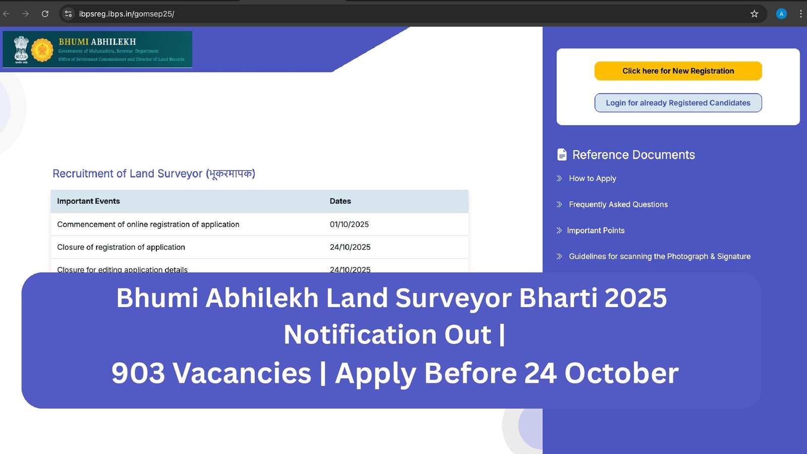 Bhumi Abhilekh Land Surveyor Recruitment 2025: Apply Online for 903 Vacancies at mahabhumi.gov.in